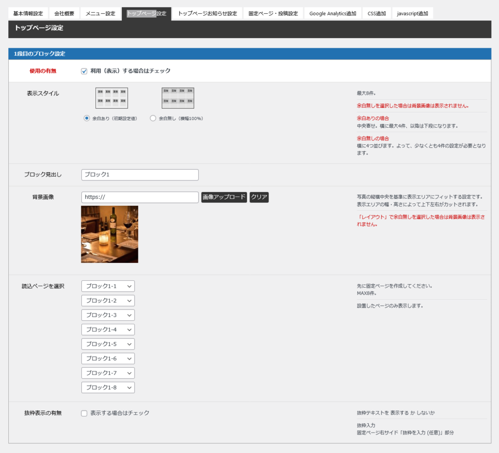 トップページブロックについて